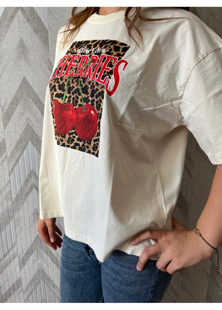 Leopar detaylı tişört standart bedendir.